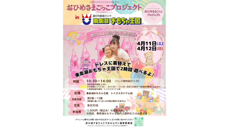 おひめさまごっこプロジェクト(R) in 東条湖おもちゃ王国~~~憧れのプリンセスになれる魔法の1日~~~おひめさまごっこプロジェクト(R) in 東条湖おもちゃ王国~~~憧れのプリンセスになれる魔法の1日~~~ おひめさまごっこプロジェクト(R)が、東条湖おもちゃ…